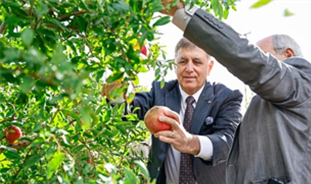 Dünya nar ihracatında ilk 10 içerisinde yer alan İzmirli üreticiler hasat yaptı. İzmir Büyükşehir Belediye Başkanı Dr. Cemil Tugay, Selçuk’ta gelenekselleşen nar hasadında çiftçilerin bereketine ortak oldu. Selçuk’un Zeytinköy Mahallesi’nde düzenlenen nar hasadında Başkan Dr. Cemil Tugay’a Efes Selçuk Belediye Başkanı Filiz Ceritoğlu Sengel, İzmir Büyükşehir Belediyesi Genel Sekreter Yardımcısı İsmail Mutaf ve Büyükşehir bürokratları, Selçuk Belediyesi yöneticileri, meclis üyeleri, muhtarlar, kooperatif başkanları ve çok sayıda çiftçi eşlik etti.