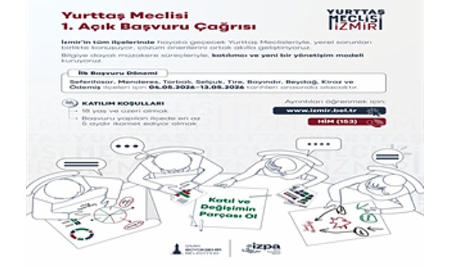 Bu sürecin bir parçası olmak ve değişimde rol almak isteyen İzmirliler https://www.izmir.bel.tr adresi üzerinden başvuru yapabilecek. Ayrıca detaylı bilgi için 153 numaralı Hemşehri İletişim Merkezi’ne (HİM) ulaşılabilecek.