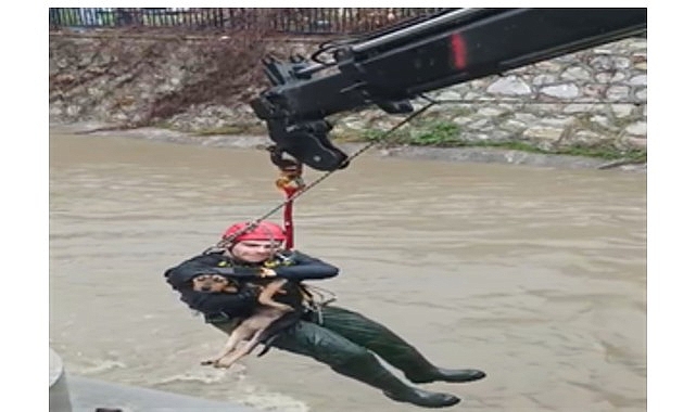 Karabağlar ilçesi Aşık Veysel Mahallesi’nde dere yatağına düşen bir köpeğin fark edilmesi üzerine çevre sakinleri durumu 112 Acil Çağrı Merkezi’ne bildirdi. Yağış nedeniyle su seviyesinin yükseldiği dereden köpeğin kurtarılması için bölgeye İzmir Büyükşehir Belediyesi İtfaiye Dairesi Başkanlığı ekipleri, arazöz ve kurtarma aracıyla sevk edildi. Olay yerine kısa sürede ulaşan ekipler, dere yatağında mahsur kalan köpeği kurtarmak için çalışma başlattı. Yaklaşık 10 dakika içerisinde bulunduğu yerden güvenli bir şekilde çıkarılan köpeğin sağlık durumunun iyi olduğu öğrenildi.